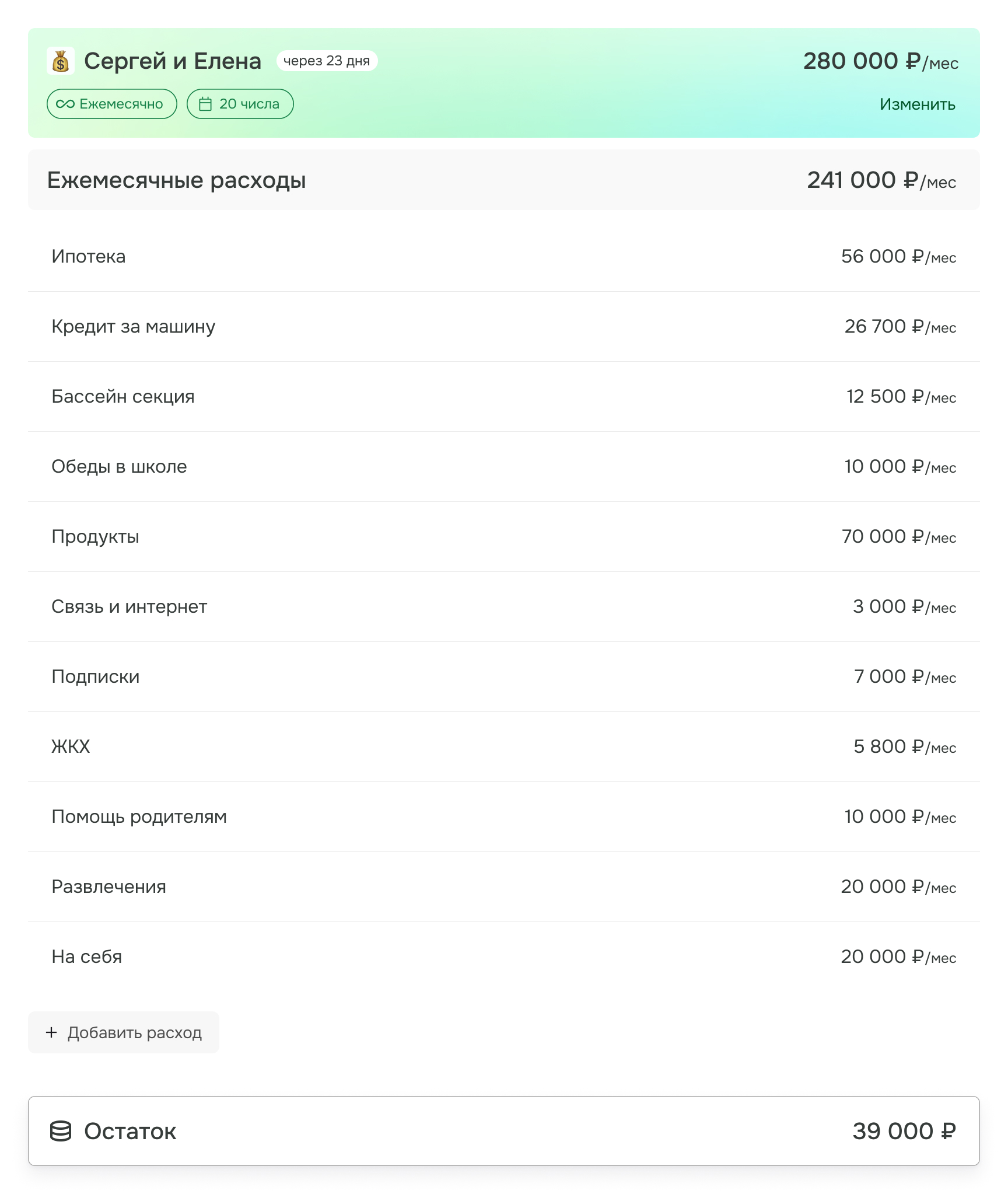и расходы всей семьи